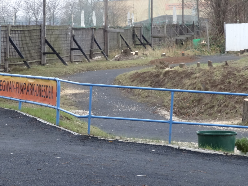 Mit einem Segway kann man hier nicht mehr fahren. Der Parcour ist kaum noch wieder zu erkennen. Wo man früher bergauf und bergab und in engen Kurven sein Können mit dem Segway testen konnte, ist jetzt die Erde aufgewühlt, stehen nur noch Baumstümpfe, liegt sauber aufgeschichtet das Buschwerk. Seit Anfang der Woche ist der Eigentümer USD Immobilien hier aktiv. „Es gibt eine Baugenehmigung. Beabsichtigt ist der Bau eines Wohngebäudes mit 54 Wohnungen“, erklärt USD-Sprecher Ulf Mehner und bestätigte einen entsprechenden Bericht der Sächsischen Zeitung von heute. Ende Oktober 2014 soll der Rohbau stehen. Die Öffentlichkeit werde „zu gegebener Zeit“ informiert, so Mehner.